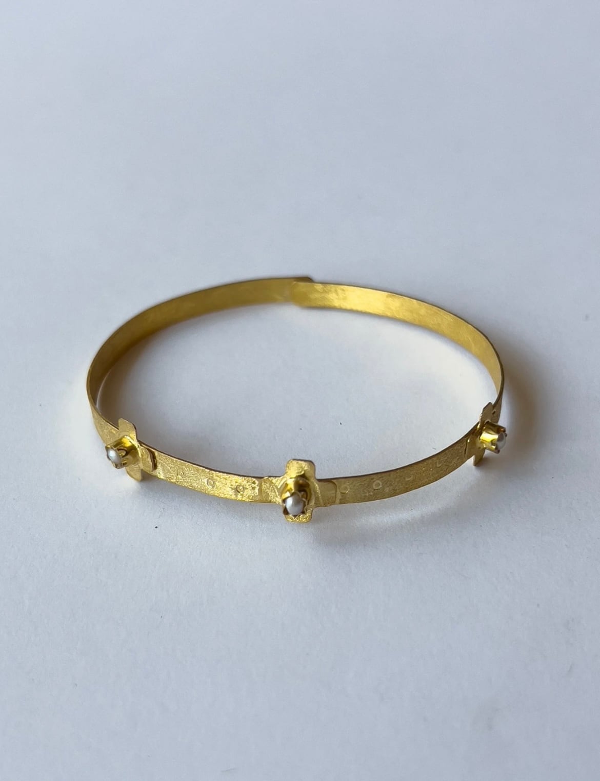 お花のモチーフに小ぶりなパールがあしらわれたキュートなバングルです♡