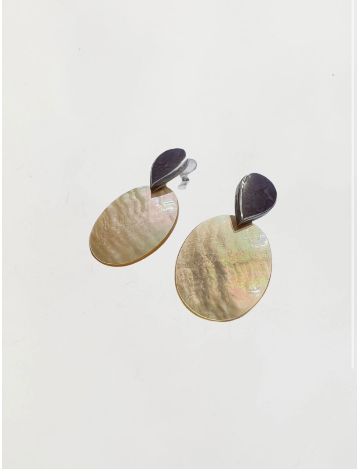 シェルとストーンの組み合わせが上品な大ぶりのピアスです。