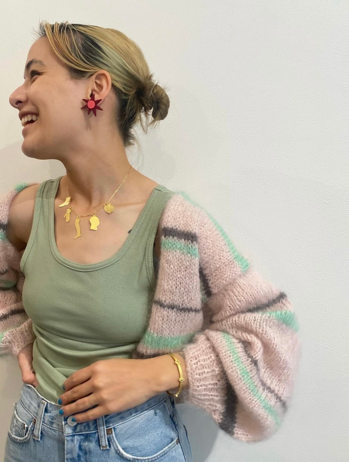 サークルとお花のモチーフがインパクトのあるピアスです♡