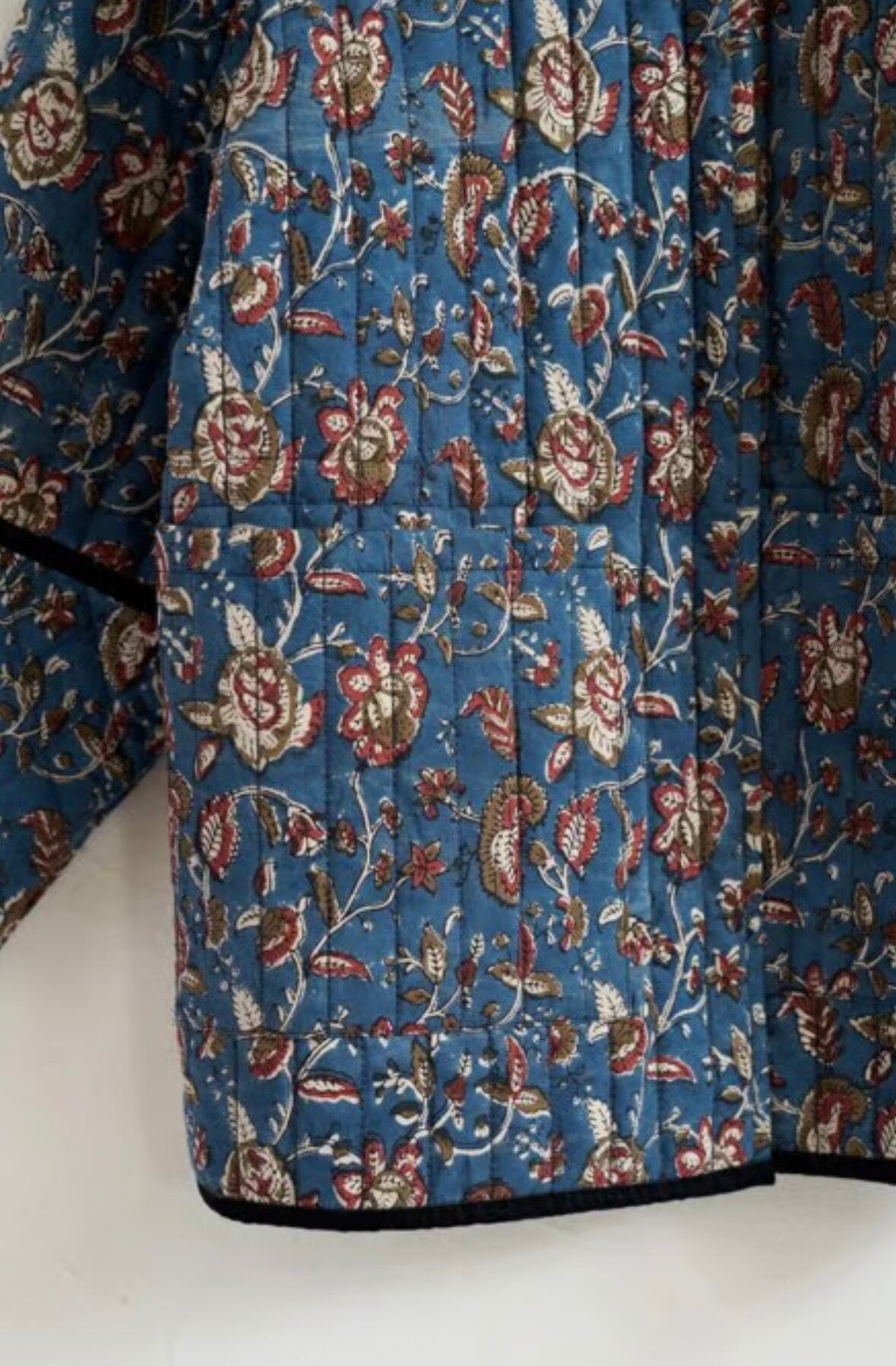 BLOCK PRINT QUILTED JACKET/BLUE